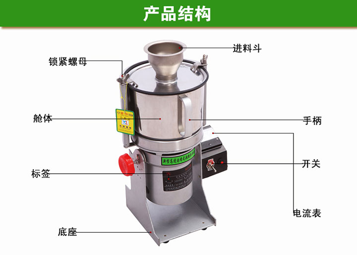 本機器是小型粉碎機,流水粉碎機,研磨機三機為一體之功能。 具有體積小,重量輕,性能穩定,操作方便,造型美