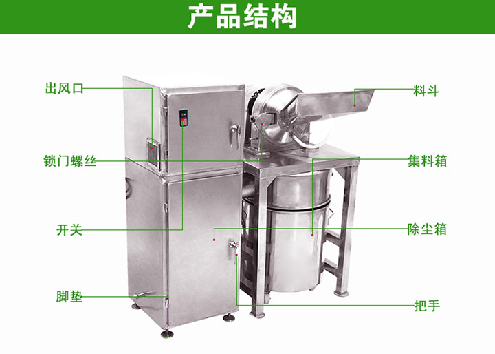 1.結構簡(jiǎn)單,粉碎腔裝、拆簡(jiǎn)便,容易清洗。
