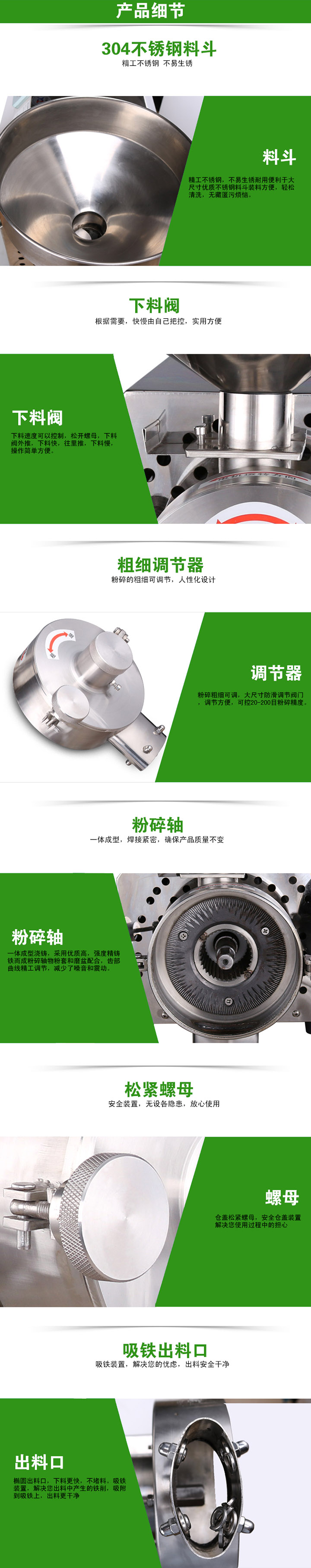 操作性能、質(zhì)量穩定、進(jìn)料順暢、磨粉細度、降低噪音和震動(dòng)、外表美觀(guān)度等方面都力求精益求精、至善至美!從