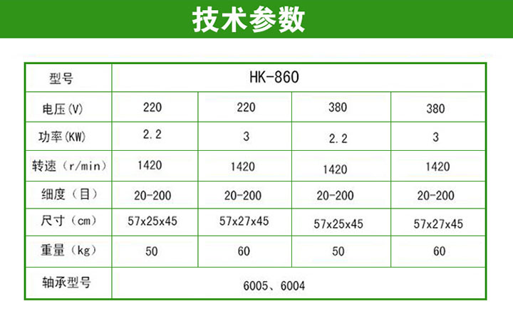 1、 860磨粉機不再采用低功率電機,220V有2.2和3KW兩個(gè)功率,380V僅有2.4KW一個(gè)功率。磨粉機的電機軸加